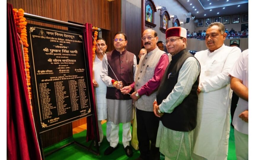 देहरादून। मुख्यमंत्री पुष्कर सिंह धामी ने शुक्रवार को नगर निगम देहरादून में आयोजित कार्यक्रम में 2 करोड़ 32 लाख 50 हजार रुपये की लागत से जुगमन्दर हॉल के जीर्णोद्धार एवं नवीनीकरण कार्य का लोकार्पण किया। इस अवसर पर उन्होंने केदारपुरम स्थित ए.बी.सी. सेंटर में कैनाल निर्माण तथा नगर निगम क्षेत्र के छह स्थानों पर पार्कों के विकास और सौंदर्यीकरण कार्यों का शिलान्यास भी किया।