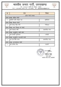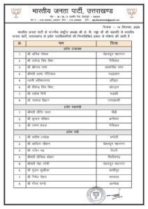 - प्रदेश उपाध्यक्ष: अनिल गोयल, राजेन्द्र सिंह बिष्ट, श्रीपाल राणा समेत कुल आठ नेताओं को प्रदेश उपाध्यक्ष नियुक्त किया गया है।