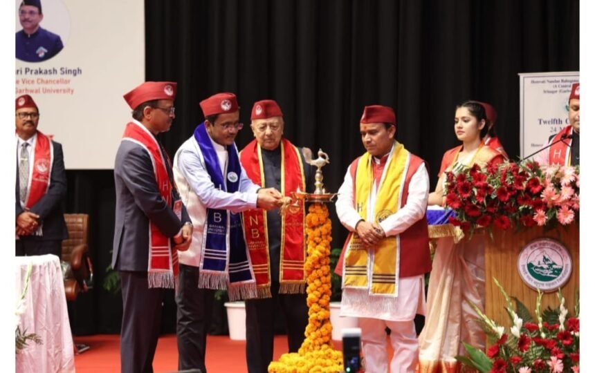 श्रीनगर गढ़वाल। हेमवती नंदन बहुगुणा गढ़वाल विश्वविद्यालय का 12वां दीक्षांत समारोह मंगलवार को धूमधाम के साथ सम्पन्न हुआ। समारोह की अध्यक्षता विश्वविद्यालय के कुलाधिपति डॉ. योगेन्द्र नारायण ने की, जबकि उत्तराखंड के उच्च शिक्षा मंत्री ने दीप प्रज्ज्वलित कर कार्यक्रम का उद्घाटन किया।
