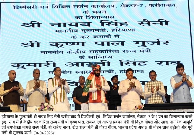 फरीदाबाद में सीएम नायब सिंह सैनी ने 120 करोड़ की 4 विकास परियोजनाओं का शिलान्यास, रोजगार मेले में युवाओं को अपॉइंटमेंट