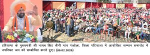 मुख्यमंत्री नायब सिंह सैनी ने कहा कि भाजपा ने जो वायदे किए, उन्हें केवल कागज़ों तक सीमित नहीं रखा। संकल्प पत्र के 217 वायदों में से पहले चरण में 60 वायदे पूरे किए जा चुके हैं, जबकि शेष संकल्पों को भी तेजी से पूरा किया जा रहा है। उन्होंने कहा कि पंजाब और हरियाणा का खून का रिश्ता है, संस्कृति और संस्कार एक जैसे हैं, इसलिए विकास का मॉडल भी सांझा होना चाहिए।