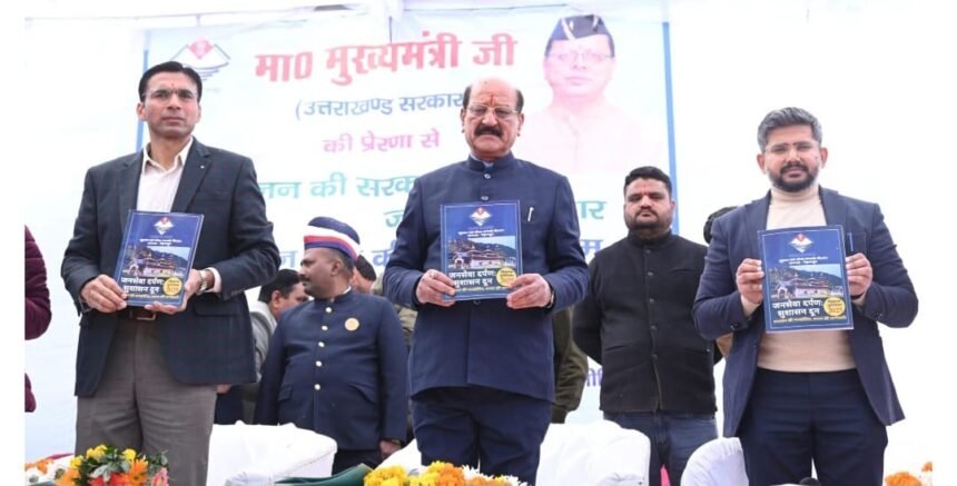 देहरादून। जन-जन की सरकार, जन-जन के द्वार अभियान के अंतर्गत विकासखंड कालसी की सुदूरवर्ती न्याय पंचायत पंजीटिलानी में आयोजित वृहद बहुउद्देशीय शिविर के दौरान देहरादून जिला सूचना कार्यालय द्वारा प्रकाशित ‘विकास पुस्तिका-2025’ का विमोचन प्रभारी मंत्री सुबोध उनियाल एवं जिलाधिकारी सविन बंसल द्वारा किया गया।