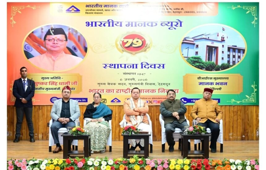 देहरादून। मुख्यमंत्री पुष्कर सिंह धामी ने मंगलवार को भारतीय मानक ब्यूरो (बीआईएस) के 79वें स्थापना दिवस के अवसर पर मुख्यमंत्री कैंप कार्यालय स्थित मुख्य सेवक सदन में आयोजित कार्यक्रम में प्रतिभाग किया। इस अवसर पर मुख्यमंत्री ने कहा कि गुणवत्ता को केवल एक मानक नहीं, बल्कि जन-आदत बनाना आवश्यक है, ताकि गुणवत्ता आधारित संस्कृति एक व्यापक जन आंदोलन का रूप ले सके।