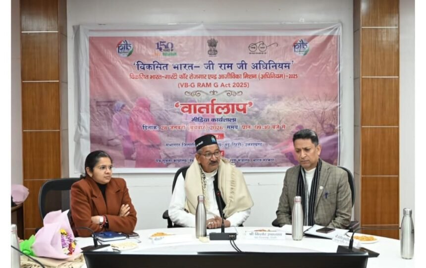 नई टिहरी। सूचना एवं प्रसारण मंत्रालय, भारत सरकार के पत्र सूचना कार्यालय (पीआईबी), देहरादून के तत्वावधान में बुधवार को जिला कार्यालय सभागार में ‘विकसित भारत–गारंटी फॉर रोजगार एवं आजीविका मिशन (वीबी–जी राम जी अधिनियम)’ विषय पर मीडिया कार्यशाला ‘वार्तालाप’ आयोजित की गई। कार्यशाला का मुख्य उद्देश्य योजना के प्रावधानों और लाभों को मीडिया के माध्यम से आम जनता तक प्रभावी ढंग से पहुंचाना था।
