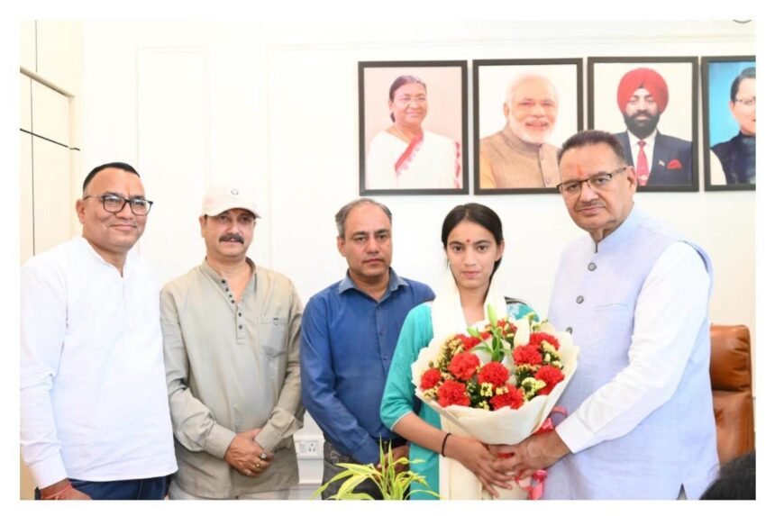 देहरादून। उत्तराखंड बोर्ड की हाईस्कूल परीक्षा में 94.60 प्रतिशत अंक प्राप्त कर प्रदेश में 15वीं रैंक हासिल करने वाली देहरादून के मालदेवता सरखेत निवासी मेधावी छात्रा साक्षी को सोमवार को कैबिनेट मंत्री गणेश जोशी ने अपने कैंप कार्यालय में सम्मानित किया। इस अवसर पर मंत्री ने साक्षी को शॉल ओढ़ाकर सम्मानित किया और उसे लैपटॉप देने की घोषणा भी की।