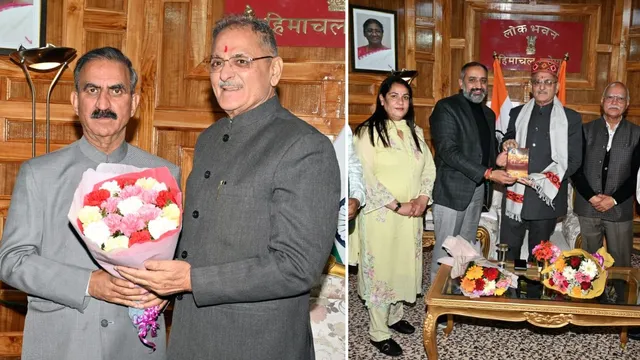 शिमला। हिमाचल प्रदेश भाजपा के प्रतिनिधिमंडल ने लोकभवन मार्च किया। भाजपा पदाधिकारियों ने राज्यपाल कविंद्र गुप्ता से मुलाकात कर प्रदेश सरकार के दो निर्णयों के खिलाफ ज्ञापन सौंपा। वहीं, दोपहर बाद मुख्यमंत्री सुखविन्द्र सिंह सुक्खू राज्यपाल से मिलने लोकभवन पहुंचे। इस अवसर पर मुख्यमंत्री ने राज्यपाल को पारंपरिक हिमाचली टोपी, शॉल तथा स्मृति चिह्न भेंट कर सम्मानित किया। इस मौके पर राज्य के विकास एवं जनकल्याण से संबंधित विभिन्न विषयों पर चर्चा की गई।